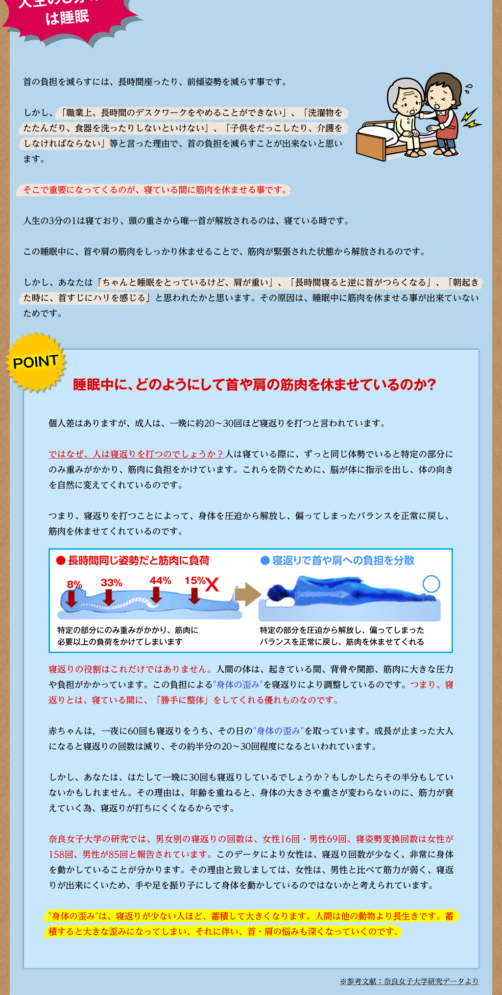 これ以上、会社に迷惑かけられないと、転職を考えはじめた頃、整体の先生から 「枕が合ってないかもね。」という言葉を頂き、ネットで調べてこの枕を購入しました。