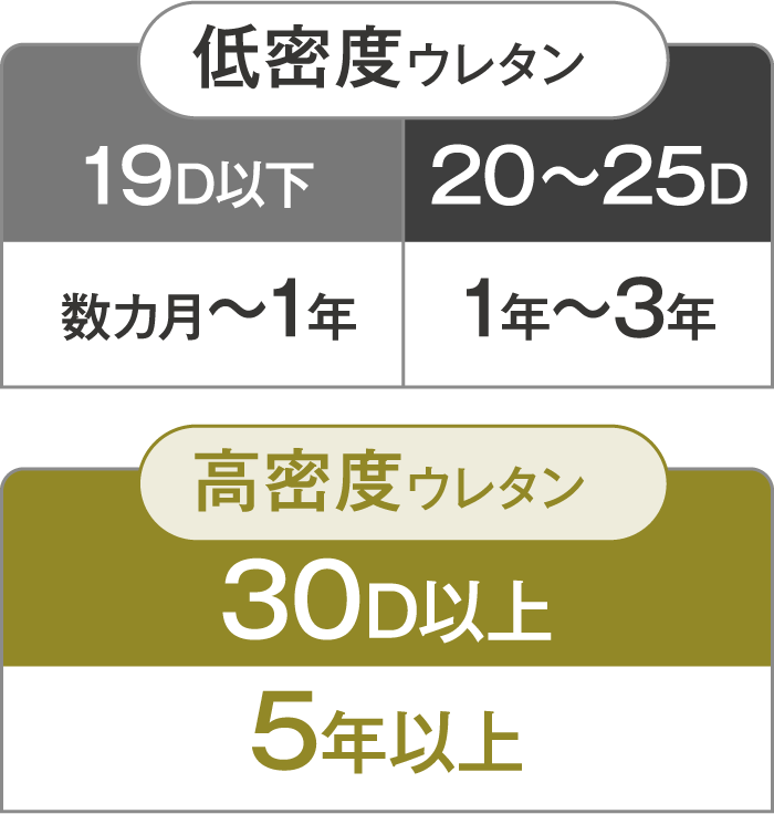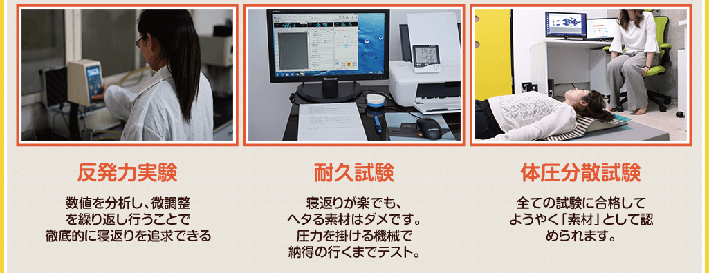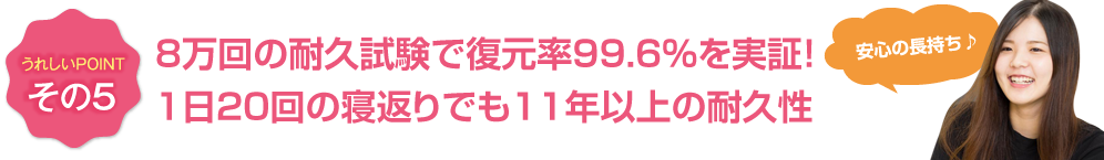 仮に1日に平均で20回の寝返りをするとして、年間7,300回(20回×365日)。つまり、 約11年間使用しても0.04%しかヘタらない という事となります。