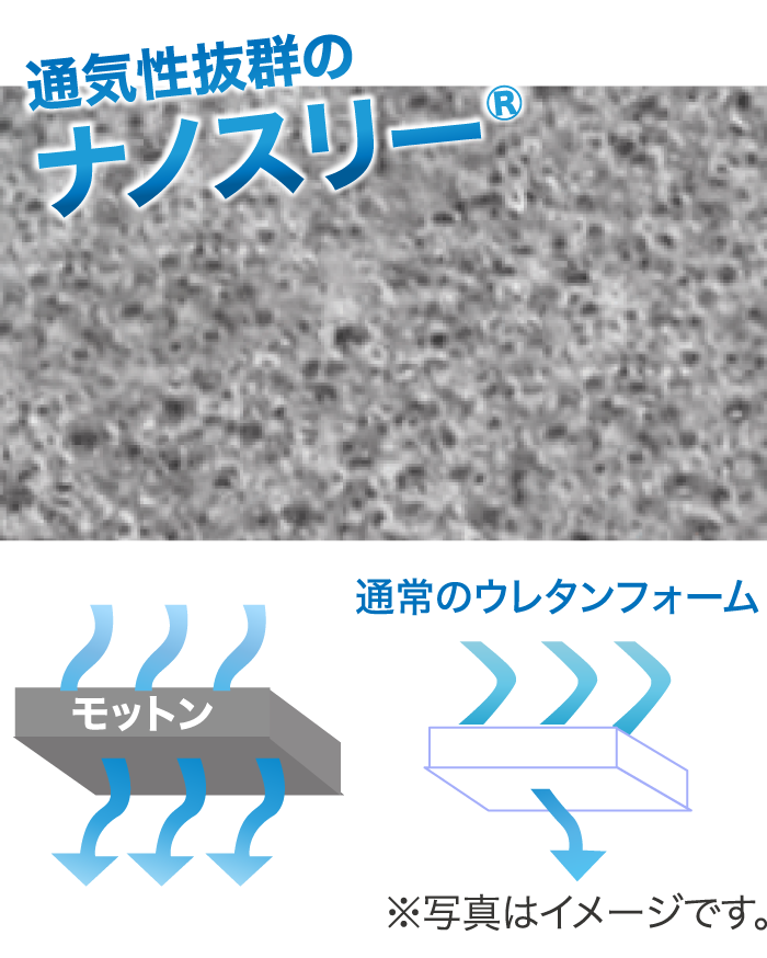 「ナノスリー®」は、先進的な技術で 高い通気性を実現し、快適な寝心地 となっております。