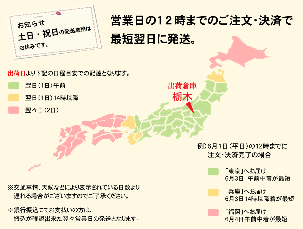 ※北海道への配達は、地域によりお届けまでの日数が変わります。