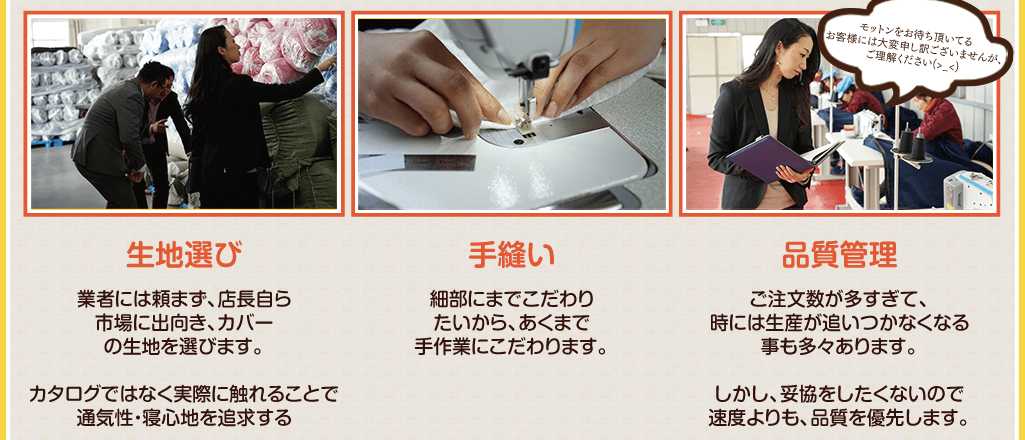こんな方に、安心して、納得して使っていただきたい。という想いと、当店の自信のあらわれと致しまして、寝具業界では異例の返金保証をお付けすることに致しました。