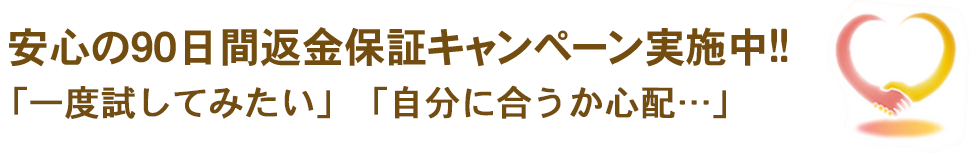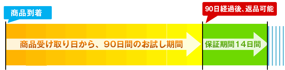 まずは、90日間お試しください。そして、万が一ご満足いただけなければご返品ください。