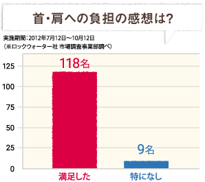 モニターに協力してくれた皆様の 約93% を超える方が、首や肩への負担の使用感に満足と回答。睡眠時や起床時の変化を喜ばれる方もいました。