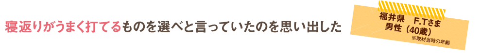 一時は転職も考えていましたが、安眠できるようになって仕事に打ち込めるようになりました。
