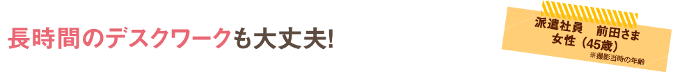 仕事中、無理な体勢をすることが多く、体がやすまりません。色々試してみたんですけど、あまり良くならなくて苦労していました。