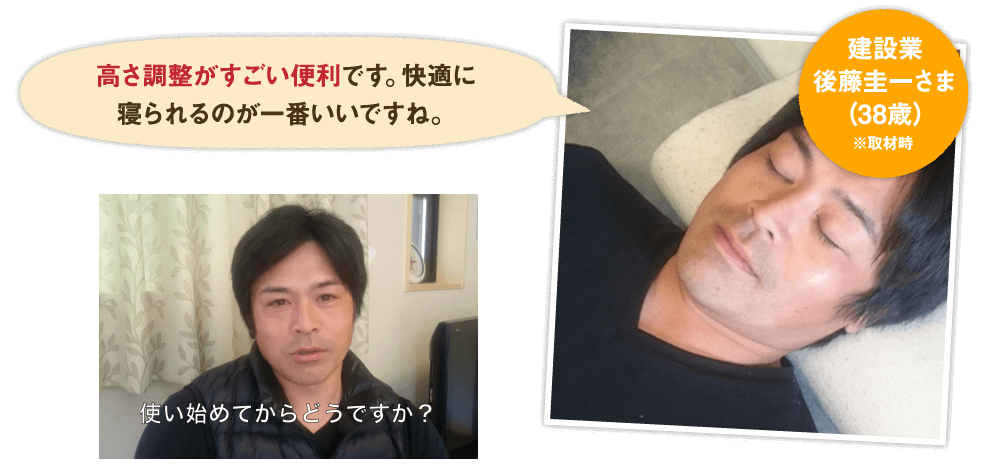 今までは寝ている時に違和感を感じていたんですけど、枕を変えてからはそれがなくなりました。寝る時に「頭が重いな」と感じていたのが、モットンの枕に変えてからはすごく頭が軽く感じるようになりました。